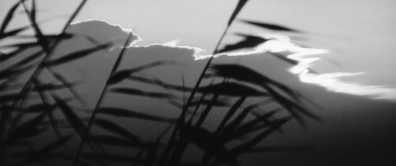 Gran parte de la película se desarrolla en exteriores y la cámara filma básicamente desde 4 emplazamientos: por arriba del carrizal, al ras de los ápices de los carrizos, en medio de ellos y al filo del agua. Todo en blanco y negro que, insisto siempre, goza de mayores posibilidades de contrastar la figura sobre el volumen y sobre el fondo, de combinar la luz y el movimiento para hacer visibles los detalles inmersos en el entramado de los carrizos. Por ejemplo, la huella del viento sobre el carrizal y el mecimiento de sus espigas. El resultado es de una poesía intransferible. Articula varios planos en un solo travelling de la nuera corriendo entre los carrizos, planos acompañados de una música ancestral que pondera las percusiones sobre cualquier tañido de cuerdas. Son de una vehemencia alucinante. La lascivia impera en los encuentros, no obstante, exentos de obscenidad y perversidad. Por el contrario, son rudimentarios, sin protocolos ni códigos de cortejo. Vaya, sin preámbulos.